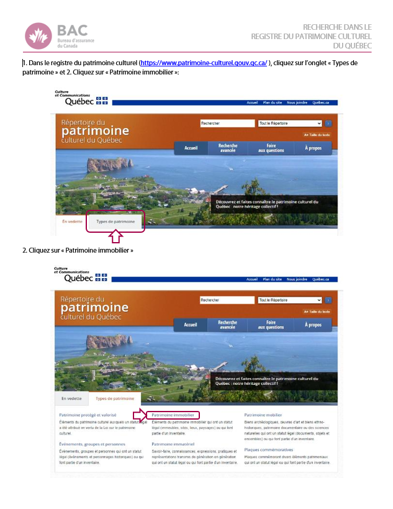 Consultez cette procédure pour confirmer le statut d’un immeuble patrimonial dans le Répertoire :